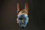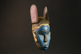 African Masks Blue Baule Tribal Wall Hanging with Rabbit Ears Decor Mask Masks for wall-G3030