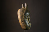 Presenting a unique African Tribal Mask, a captivating artifact that showcases the intricate artistry and cultural significance of African masks. This exquisite piece features elegantly pierced ears reminiscent of the ear flaps seen in the Eastern Boa, adding a distinctive flair to its overall design.
