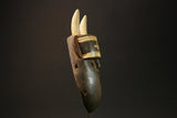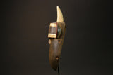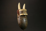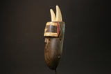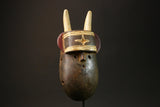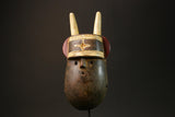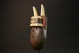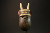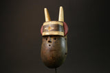 African TOMA Baule Mask Hand-Carved Wood Brown Wall Hanging with Horns-G3062