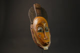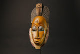 the baule mask is a stunning work of art that originates mask from west africa. beautifully handcrafted and stained in a delicious coffee black, this african wooden
