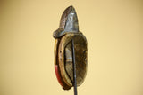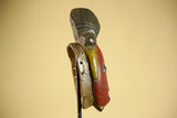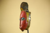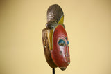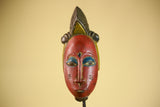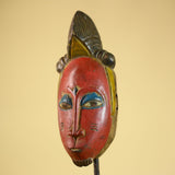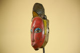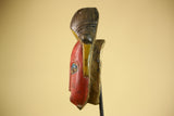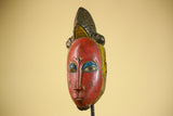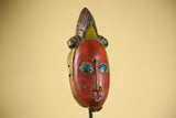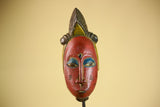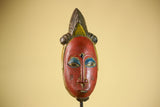 African Vintage Baule Mask Red Painted Mask with Crest Carved Wood Wall Art-G6036