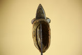 This vintage Baule mask is a striking example of classic tribal artistry, carved from solid wood and painted in vibrant tones of red, blue, and yellow. The mask displays the signature elongated facial structure associated with Baule craftsmanship, featuring high-arched brows, narrow eyes, and a sculpted mouth that enhances the expressive character of the mask. A raised crest crowns the top, giving the mask a ceremonial presence suited for collectors and interior designers alike. Stand Not Included.