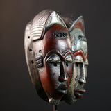 African Wood Baule Mask | Antique Two-Faced Tribal Wall Decor | Unique Handcrafted Art | Cultural Home Accent Piece-G5181