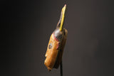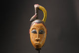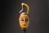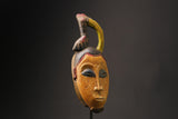 it is in excellent condition.This noble mask is adorned with the horns of an antelope or ram and a hornbill leaning forward. According to my research, for the Guro, this mask symbolizes bravery and compassion. The carved face depicts a human visage with finial details that recall a Guro style.The Guro of the Ivory Coast (Cote D'Ivoire) are related to the Baule, and there is a resemblance in their mask. The daily life of the Guro is dominated by secret societies called "zuzu". Such mask were danced in various ceremonies. They belong to the category of Je mask and are the first to appear to warm up the audience prior to the appearance of the anthropomorphic mask, considered to be the most important during the performance.Of mask, the Guro art is very similar to the Baule's and are sometimes difficult to tell apart. However, there are subtle differences between the two styles. For example, Guro maskusually have longer faces. Furthermore, the raised forehead and the bridge of the