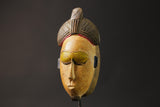 Ex-FrenchAfrican tribal art collection. HeavyAfrican mask with a vertical ridge on the forehead. This is a striking feature of the statuary from the area between the Guro and the Bété. The braided hairstyle is neatly represented by parallel streaks. This mask, whose function remains poorly documented, would symbolize masculine strength, and perhaps also a powerful notable named "migone". Glossy dark patina, cracks and abrasions