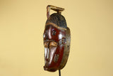The surface shows natural aging, rich dark red patina, and areas of wear consistent with vintage handmade African masks. Its balanced proportions and elegant sculptural form make it ideal as African mask wall art or as a refined collector’s piece of authentic African art.