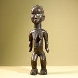 Hand Carved Vintage Baule Statue: Tribal Female Wood Figure Côte d’Ivoire-G5817