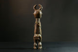 This statue, with one foot showing a charming chip and a patina of silky golden brown, is not only a decorative item but also a window into the traditions and beliefs of the Igbo people. Perfect for collectors of African masks and tribal art, this unique altar figure will bring a touch of cultural richness and history to any space, inviting admiration and conversation. Embrace the legacy of the Igbo culture with this stunning antique collectible.
