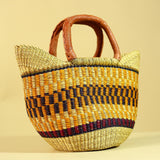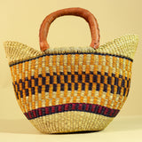 African Bolga Basket Handwoven in Ghana with Leather Handles-G6180