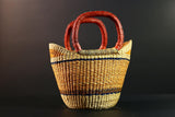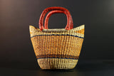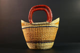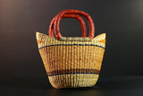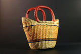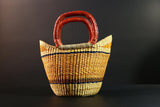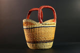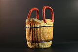 African Bolga Basket Handwoven Straw Market Tote with Leather Handles Ghana Decor Functional Artisan Tribal Storage Home Accent G5590