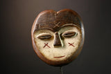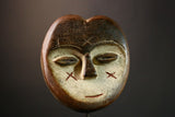 African Lega Mask Lengola Tribe DR Congo Authentic Tribal Wall Art Handcarved Wood Decor Piece Rare Cultural Artifact- G3593