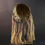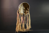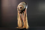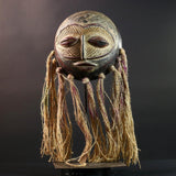 African Lega mask raffia tribal face wood carving congo wall hanging spiritual bwami art carved round mask african fiber sculpture G5462