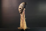 This powerful tribal mask originates from the Lega people of the Democratic Republic of Congo. Such masks were not made for display but carried deep spiritual and societal meaning, used in the secretive Bwami society during initiation rites. The Lega mask marked personal achievement and the progression of knowledge within the tribe.