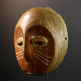 Authentic Lega Initiation Mask | Oval African Tribal Mask from Congo | Bwami Society Carved Wood Wall Art | Ethical Cultural Sculpture-G5296