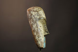 Behold an exquisite artifact from the heart of Africa—a captivating Lega mask, steeped in the traditions of the Democratic Republic of the Congo. This African mask is not merely an object of art; it is a timeless piece, masterfully carved to echo the primitive yet profound elegance of its origins. Displaying remarkable craftsmanship, the mask's clean geometrical design brilliantly reflects the skills of the Lega artisans. The mask's unusual charm is accentuated by its harmonious blend of three distinct nasal edges, skillfully separating the eyelids to create a mesmerizing illusion that draws the observer into its enigmatic expression. This intricate interplay of facades embodies the essence of African mask art, projecting the mysticism and cultural richness that the Lega people cherish. Characterized by three unique facial profiles, each angle of the mask tells its own story, inviting interpretations based on whom or what the viewer perceives. Such a piece is ideal for collectors of cultural treasures, art enthusiasts interested in African art, or those seeking a distinctive wall décor piece that resonates with history and authenticity. Elevate your space with this extraordinary African mask, a testament to the deep spiritual and cultural heritage of Africa. Whether displayed in a gallery setting or as an inspiring home accent, this antique-style artifact promises to captivate and add depth to any collection. Experience the allure of African artistry through this beautifully crafted Lega mask, a genuine celebration of heritage and art.