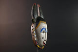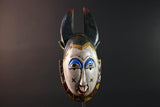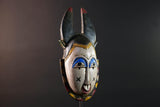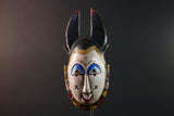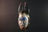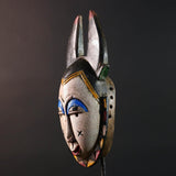 Africa guro mask light face with blue brow horns tribal art wall sculpture hand carved mask rustic decor african gift for him portrait-G5531