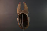 The Guro people are known for masks that merge human elegance with animal or symbolic crests. Worn in community dances, these masks celebrate spirits, fertility, and ancestors. The curved horns and bright coloring on this mask evoke strength and beauty.