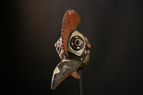 Experience the rich cultural heritage of Burkina Faso with our authentic African Old Bobo Bird Mask. This traditional wooden dance mask, dating back to 1935, reflects the intricate artistry of the Dan tribe. It's a true testament to the original African culture, beautifully preserved in the form of this intricate wood mask. This unbranded helmet mask is a brown color, intricately carved with the distinct style of African mask wall decor that is sure to captivate and inspire. Although the ownership history remains a mystery, the mask's handmade craftsmanship speaks volumes of its value as a collector's item and a tribute to the timeless beauty of Tribal African masks.