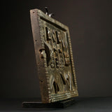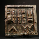 This stunning African Dogon Wood Granary Door is a remarkable piece of art that highlights the exquisite craftsmanship of Dogon culture. Adorned with intricate carvings of Kanaga mask dancers and mythical reptiles, this granary door serves as a striking wall decor that tells a story of tradition and artistry. Perfect for adding character to your home, this unique accent piece not only enriches your wall space but also connects you to the cultural heritage of Africa. Enhance your decor with this captivating granary door, a splendid choice for those who appreciate authentic art pieces that evoke history and meaning.