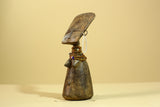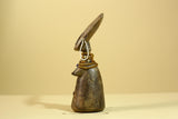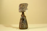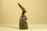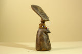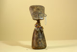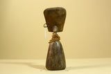 This African fertility statue is a carved wood figure with beaded neck rings and a stylized head typical of Central African traditions. The statue measures 22.5cm (8.8”) high, 8.3cm (3.2”) wide and 7.7cm (3”) deep. A vintage handmade piece showing natural wear from age, the statue displays warm patina, tribal markings and elegant sculpting. Figures like this statue are linked to fertility blessings and ancestral protection. Ideal for display, collectors and décor. Stand not included.
