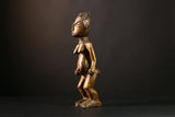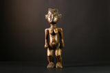 Antique Yoruba Eshu Statue Hand Carved African Art Nigerian Cultural Icon This exquisite Yoruba Eshu statue is a captivating example of the vibrant and diverse cultural heritage of Nigeria. Expertly hand-carved, this piece embodies the artistry and dexterity of Yoruba craftsmen, renowned for their ability to infuse life and spirit into wood. Fashioned from premium-quality wood, the statue showcases intricate designs that highlight the cultural significance of Eshu, a revered deity in Yoruba mythology. Eshu, often considered the messenger of the gods, is a complex figure known for his cunning and wisdom, making this statue a powerful symbol of communication and spiritual connection. Standing tall and dignified, this sculpture bears the marks of an intriguing past, with subtle textures and a rich patina that speak of its history and use. The finely detailed carvings and expressive form reflect the vibrant traditions and lively spirit of the Yoruba people, inviting admiration and curiosity from all who behold it. Measuring [insert dimensions], this antique Eshu statue is an essential addition for collectors of African artifacts or anyone seeking a unique piece of cultural decor. Perfect as a centerpiece or an accent on a shelf or mantel, it enriches any environment with its historical and artistic depth. Embrace the beauty and heritage of African craftsmanship with this stunning Yoruba Eshu statue, a testament to the meaningful and enduring traditions of Nigerian artistry. Don’t miss the chance to own this remarkable piece, which offers a glimpse into the rich spiritual and cultural life of the Yoruba people.