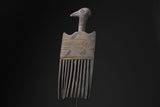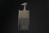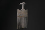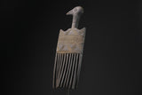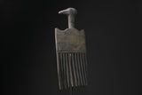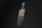 The tribal art of Africa proves once again that any usual object can become an artistic support. The decorative aspect of an object is neverits intrinsic function. In African art, any everyday object can be transformed into a masterpiece while keeping its usefulness. The majorrole played by women in the political life of the kingdom is illustrated by the recurrence of the female motifin Luba art. The latter, which stood out forits prestige and quality, had a great influence on neighboring groups. This comb is surmounted by a protective effigy embodying a political and spiritual intermediary, a role held by the woman in Luba royalty. Her headdress, behind a wide band revealing a shaven forehead, evokes one of those worn by Luba women at the beginning of the 20th century.