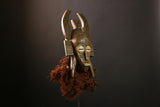 Presenting an extraordinary African Mask from the Senufo tribe, the kpelie mask represents a captivating blend of feminine elegance and animal characteristics. Traditionally worn by men during ceremonies, this stunning mask combines the ideal features of a woman with those of animals, such as the graceful hornbill, embodying fertility and strength. This unique piece showcases distinct scarification marks that signify the Senufo ideals of beauty, honoring the cultural heritage and artistic expression of the tribe. The mask's design features appendages that extend downward, symbolizing legs that tether the spirit to the earth, reflecting a deep connection to the ancestral world. The prominent figure atop the mask varies based on the caste group it represents, symbolizing different status and roles within the community. In this instance, the hornbill is a powerful symbol linked to metal smiths, further enriching the mask’s significance. Imagine this exquisite kpelie mask as the centerpiece of your decor, inviting admiration and sparking conversation. Its intricate craftsmanship and cultural depth make it an exceptional addition to any collection, whether displayed in your home or showcased in an art exhibit. Embrace the beauty and legacy of African artistry with this remarkable mask—an investment in history and culture that you will cherish for years to come!