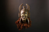 African Mask Senufo Kpelie Tribal Face Art - Unique Hand-Carved Wooden Wall Decor, Cultural Sculpture for Home and Collectors -G3682