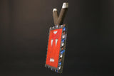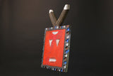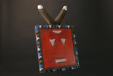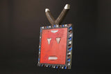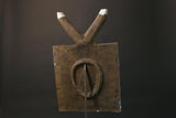 African Mask/African vintage/African figure This circular African mask, says Junior, has a crenellated border, with hollowed-out eyes topped with protruding conical pupils, it has a rectangular mouth in which was chiseled a teeth, in reference to the traditional image of teeth among young people. Reduced animal ears are shown on the rounded horns. The female kplekple mask, according to some authors (African Barbier-Mueller Masks, p.116) is said to be red. Vogel Baule) howeverindicates that in the Baoulé version of the Goli the male mask is painted red, and the feminine in black. It is likely that this allocation varies from village to village. Metal inlays. Dedicating the manifestation of a series offamily masks Goli, this circular mask with rounded horns evoking the antelope, is considered in some cases as a male mask, kplekple yassoua or yaswa