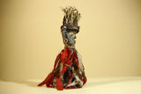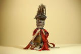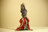 African Nkondi Vintage Ritual Statue with Feathers & Cloth Fetish Figure-G6028