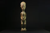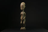 This statue is originated from Ivory Coast. The territory covered by the AKAN ethnic group is vast. The people carrying these statue could travel from village to village without danger because of their role as peace-keepers. These statue are considered useful in keeping the AKAN people safe. These elongated masks are covered with white kaolin and paint and feature a face that is heart-shaped with a long, fine nose