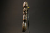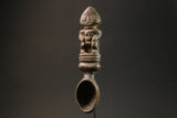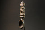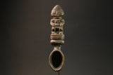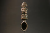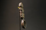 This figure spoon boasts a superb handle crafted into the likeness of a figure wearing a highly ornate headdress, indicative of his dignified status. Among the most popular African art pieces,