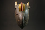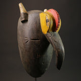 African tribal bird beak mask carved wood with horns red yellow painted eyes cultural wall art sculpture home decor West Africa- 2934