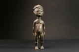 The Namji doll serves as a symbol of fertility for young women in the Namji tribe residing in the northern region of Cameroon. These dolls are incredibly valuable and are regarded as some of the most remarkable dolls in Africa. Fashioned from wood, they are adorned with an assortment of intricate embellishments, including beads, cowrie shells, coins, metal strips, fiber, and leather.