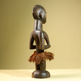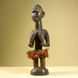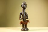 African Tribal Statue Hand Carved Wood Female Figure Sculpture with Raffia Skirt Authentic Vintage Ethnic Art Decor Collectible-G5823