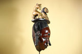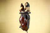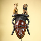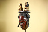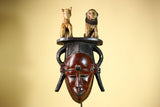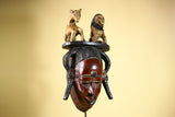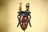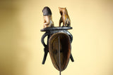 African Vintage Guro Mask with Two Animal Figures Hand Carved Tribal Art-G6046