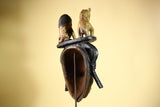The warm red and darkened tones give the mask a balanced visual appeal suitable for display in tribal art collections. Natural aging marks confirm that this mask has been handled and appreciated over time. The carved animals enhance the narrative quality of the mask, making it stand out among decorative African artworks. Ideal for collectors, designers, and those seeking a unique centerpiece, this mask brings traditional heritage into modern interior spaces. Stand Not Included
