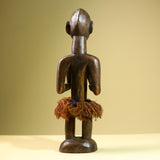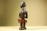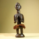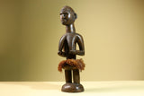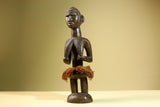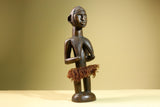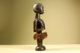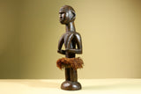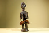 Hand Carved Vintage African Baule Statue Tribal Wood Figure with Raffia Skirt-G5818