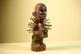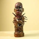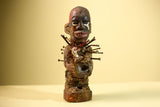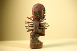 Each nail driven into its torso represents a spiritual pact or plea for intervention. The figure’s heavy weathering and binding suggest authentic ceremonial use. This is not just a sculpture—it’s a symbol of ancestral power and sacred duty.