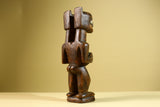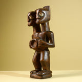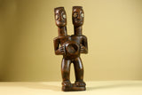 This Yoruba statue is a finely hand-carved African twin figure crafted in wood, representing rich tribal art and deep symbolic meaning. The statue measures approximately 45 cm × 18.5 cm × 10 cm (17.7" × 7.3" × 3.9"). Created in traditional Yoruba style, it features elongated forms, detailed carving, and cultural symbolism linked to fertility, protection, and ancestral worship.