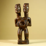 Yoruba African Twin Figure Hand Carved Wood Statue Tribal Fertility Art Decor West Africa Sculpture Vintage Home Decoration-G5811