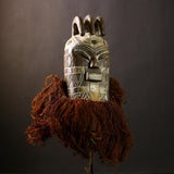 This stunning African ceremonial mask is a beautiful representation of Songye artistry. With its unique geometric designs and curved forms, this mask serves as an eye-catching decor piece for any home. Ideal for mask collectors and enthusiasts, this authentic mask captures the essence of cultural heritage from DRC Zaire. As a decorative item, this mask adds character and depth, enhancing your living space with a touch of tradition and creativity. Celebrate the beauty of masks with this exquisite piece.