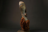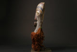 Beautifully carved masks made by the Songye masks people of southeastern Nigeria in the early to mid 20th century. The Agbogho, or "spirit of the virgin", was worn only by men during funeral processions or agricultural dance festivals in honor of deities and/or important members of the village. They represent the beauty and grace of Igo's ideal young woman. Masks are characterized by small, balanced facial features, often topped with elaborate hairstyles or figures, and various facial tattoos. These special masks are highly sought after and increasingly difficult to come by. Would be a wonderful addition to any African/tribal art or mask collection, or an eye-catching addition to almost any setting.