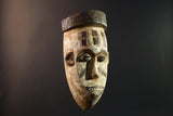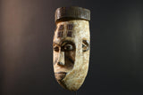 African Songye mask, tribal kifwebe male mask art, DR Congo carved wall mask, geometric African face, spiritual ritual decor-G5404