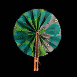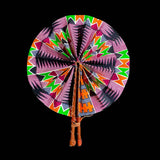 The African Art fans display a remarkable blend of traditional and cultural styles. The fan serves its purpose by providing fast relief from heat. These colorful African Print Fans are not only fashionable accessories, but they also complement every outfit and serve as conversation starters wherever you take them.