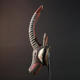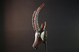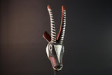 African antelope mask tribal animal head with striped horn and red black white painted wood Bobo Bamana style wall decor sculpture G5568