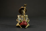 An old brass Statue of tribal African musician playing a rare musician instrument is made by local craftsmen of India. Diwali gift, new year gift, souvenir, office, school table display, house warming gift, wedding gift for friends and family.