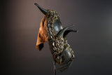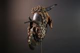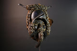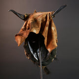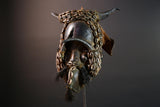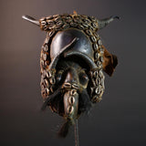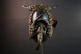African Dan Mask – A striking, hand-carved Dan mask from Cote d’Ivoire, featuring hundreds Mask of genuine cowrie shells Mask meticulously applied around the headdress and jawline. This wood sculpture embodies ancestral spirit traditions, once worn during ceremonial dances to honor harvest rites and invoke protection. The bold horns and intricate shell pattern create dynamic shadow play, making it a captivating focal point in any room. Suitable for collectors of African tribal art or as a dramatic wall display, this mask bridges ancient ritual significance with modern décor sensibilities.