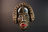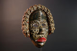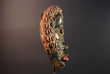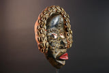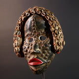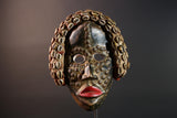 Africa Dan Mask Carved Wood Tribal Face Headdress with Cowrie Shells Liberian Ceremonial Art Ethnic Home Decor Primitive Folk Art Rare-G5667