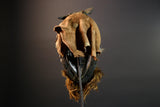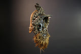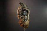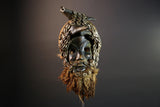 This striking African Dan antelope mask features bold horns, cowrie shell accents, and a fiber beard. Hand-carved from wood in Côte d’Ivoire, it embodies the powerful ritual spirit of Dan tribal art. Measuring 34 cm x 17 cm x 17 cm (13.4" x 6.7" x 6.7"), this mask is a captivating decor piece. Ideal for collectors of African masks or ethnographic artifacts. The mask’s expressive eyes, organic patina, and dynamic textures reflect traditional ceremonial uses. A powerful display of tribal craftsmanship and symbolic heritage.
